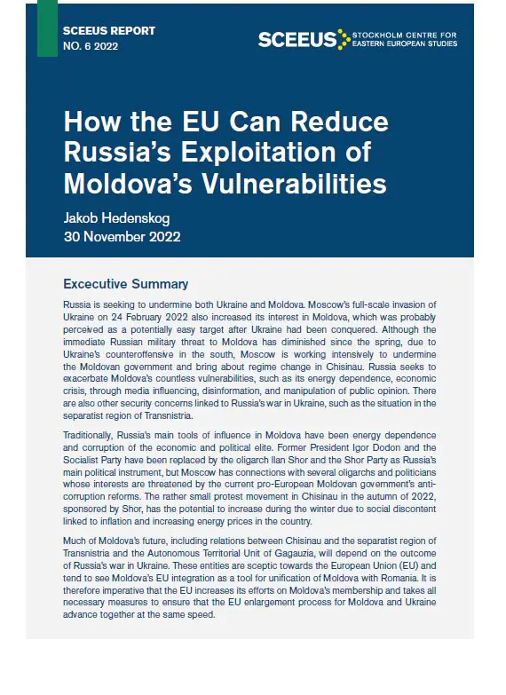 This report examines Russian tools of influence in Moldova since Russia’s full-scale invasion of Ukraine on 24 February 2022, and how these might affect the EU candidacy of Moldova. The report makes policy recommendations on the measures the EU could implement to reduce Russia’s influence and exploitation of Moldovan vulnerabilities.