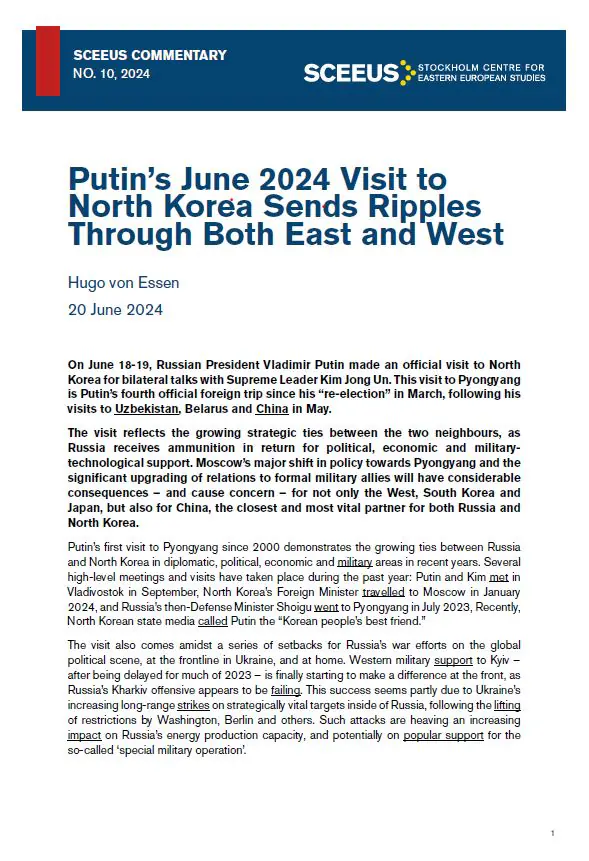 On June 18-19, Russian President Vladimir Putin made an official visit to North Korea for bilateral talks with Supreme Leader Kim Jong Un. This visit to Pyongyang is Putin’s fourth official foreign trip since his “re-election” in March, following his visits to Uzbekistan, Belarus and China in May.