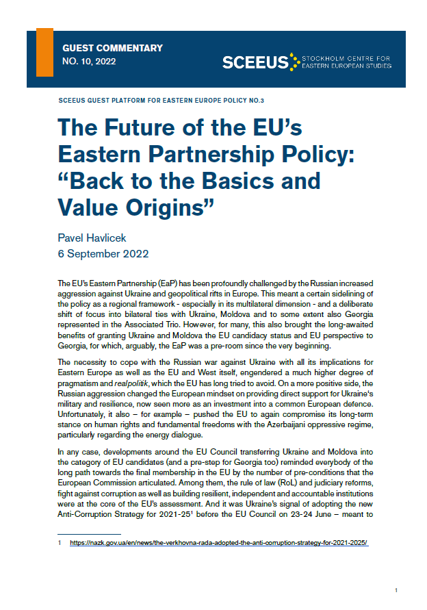 In any case, developments around the EU Council transferring Ukraine and Moldova into the category of EU candidates (and a pre-step for Georgia too) reminded everybody of the long path towards the final membership in the EU by the number of pre-conditions that the European Commission articulated. Among them, the rule of law (RoL) and judiciary reforms, fight against corruption as well as building resilient, independent and accountable institutions were at the core of the EU's assessment. And it was Ukraine's signal of adopting the new Anti-Corruption Strategy for 2021-25[1] before the EU Council on 23-24 June – meant to satisfy European leaders and electorates that Ukraine will recommit to mutual cooperation based on norms and values – which has traditionally been central to the EaP.