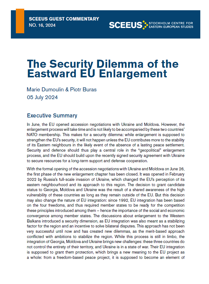 However, what makes for the security dilemma is a paradox: the EU enlargement which is rightly seen as a precondition for the block’s long-term security and stability will not happen unless the Europeans themselves provide sufficient security to Ukraine. It is inconceivable that the EU could accept Ukraine as a new member (or provide a credible accession perspective) as long as the country is at war and - even if case of a ceasefire or truce should a full victory not be achieved – is not adequately protected against potential future aggressions. In other words: before Ukraine’s and Moldova’s integration with the EU can boost Europe’s security, it is the EU which will have to provide protection for them.