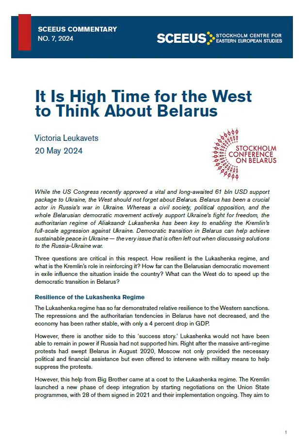 While the US Congress recently approved a vital and long-awaited 61 bln USD support package to Ukraine, the West should not forget about Belarus. Belarus has been a crucial actor in Russia’s war in Ukraine. Whereas a civil society, political opposition, and the whole Belarusian democratic movement actively support Ukraine’s fight for freedom, the authoritarian regime of Aliaksandr Lukashenka has been key to enabling the Kremlin’s full-scale aggression against Ukraine. Democratic transition in Belarus can help achieve sustainable peace in Ukraine — the very issue that is often left out when discussing solutions to the Russia-Ukraine war.