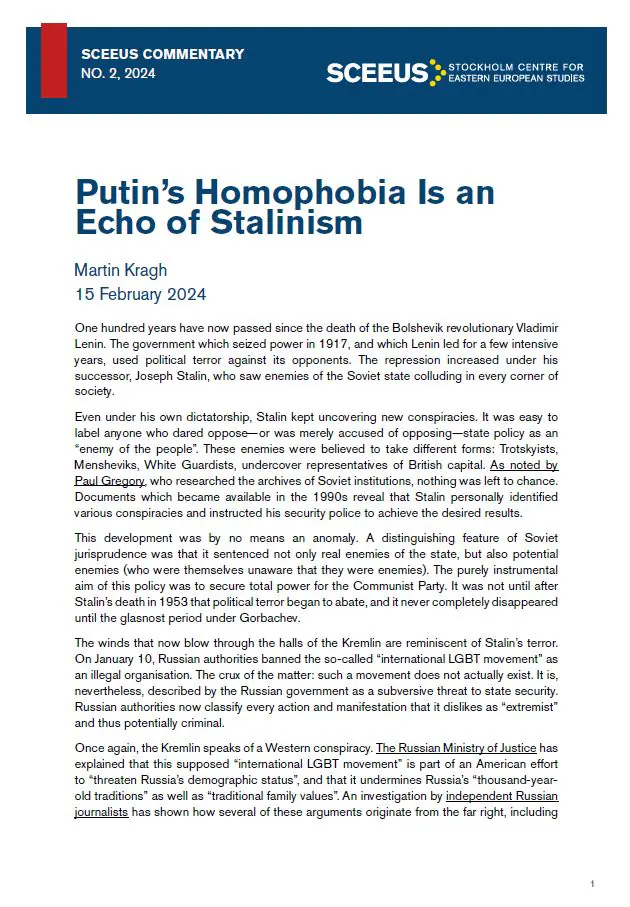 The winds that now blow through the halls of the Kremlin are reminiscent of Stalin’s terror. On January 10, Russian authorities banned the so-called “international LGBT movement” as an illegal organisation. The crux of the matter: such a movement does not actually exist. It is, nevertheless, described by the Russian government as a subversive threat to state security. Russian authorities now classify every action and manifestation that it dislikes as “extremist” and thus potentially criminal.