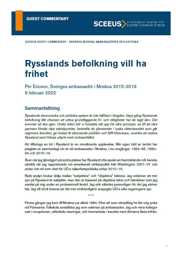 SCEEUS Guest Commentary - Svenska Moskva-ambassadörer reflekterar