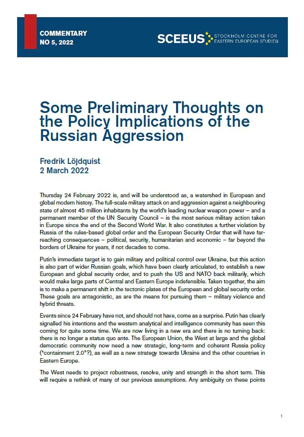 Some Preliminary Thoughts on the Policy Implications of the Russian Aggression