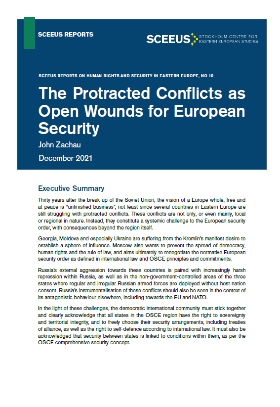 Thirty years after the break-up of the Soviet Union, the vision of a Europe whole, free and at peace is “unfinished business”, not least since several countries in Eastern Europe are still struggling with protracted conflicts. These conflicts are not only, or even mainly, local or regional in nature. Instead, they constitute a systemic challenge to the European security order, with consequences beyond the region itself.