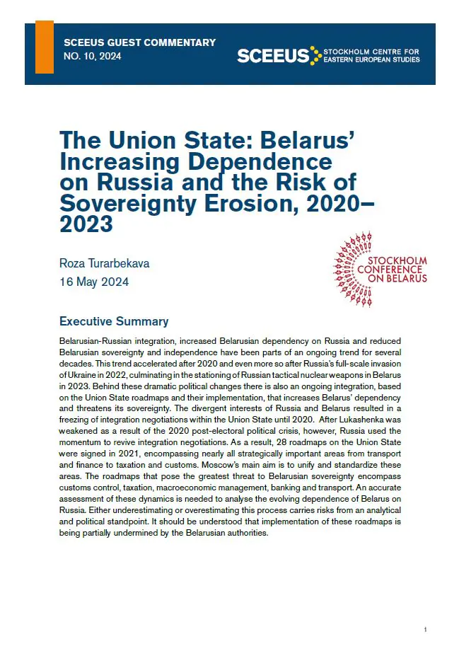 The Union State: Belarus’ Increasing Dependence on Russia and the Risk of Sovereignty Erosion, 2020-2023